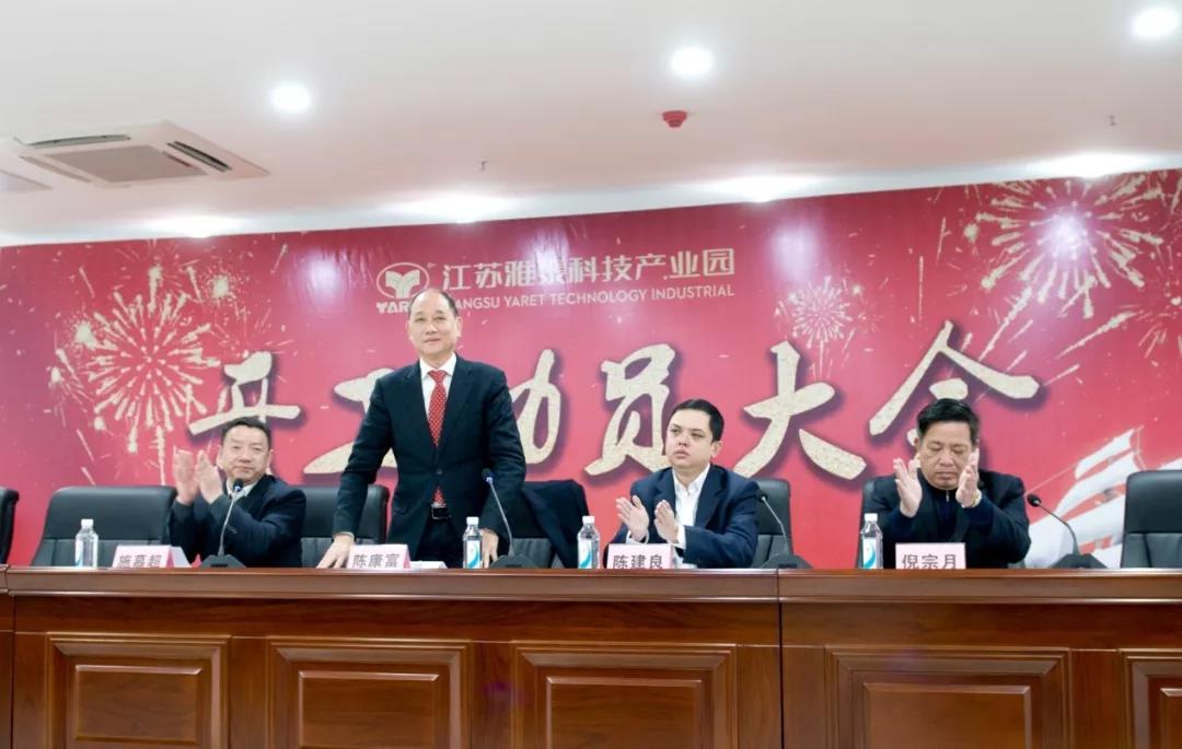 一元復(fù)始,萬(wàn)象更新。2019年2月15日上午8時(shí)30分,集團(tuán)與江蘇雅泰科技產(chǎn)業(yè)園分別在上海與宿遷兩地順利召開(kāi)了新春開(kāi)工動(dòng)員大會(huì),董事長(zhǎng)陳康富攜集團(tuán)公司總裁班子成員向參會(huì)的各部門(mén)各車(chē)間員工拜年,向大家送去新春祝福和美好祝愿。
