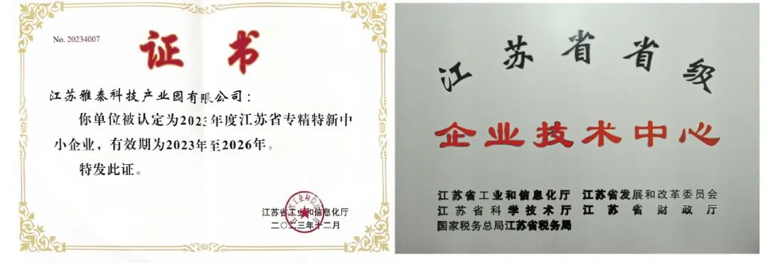 江蘇雅泰喜獲“江蘇省專精特新”、“江蘇省企業(yè)技術(shù)中心”兩項省級資質(zhì)榮譽,標(biāo)志著江蘇雅泰科學(xué)管理體系、技術(shù)研發(fā)能力邁上了更高的臺階!