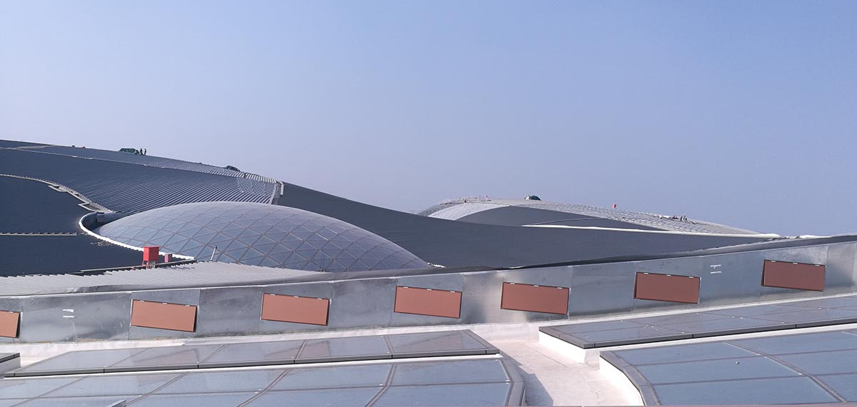 5)屋頂面積:18萬平方米,8根C形柱作支撐,相當(dāng)于25個(gè)標(biāo)準(zhǔn)足球場;